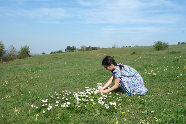 Missy wore it for a Sunday afternoon stroll. This is the common, miles of open grass land, just five minutes walk from our house. I felt so blessed that afternoon. Missy was happy, loved her dress, picked flowers, played with my friend's beautiful baby - the simple things!